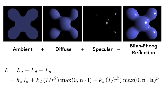 - $k_a$:环境光系数,表示着色点对环境光的吸收能力