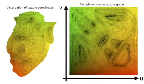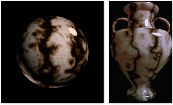 我们可以想象左图中的球是一个实心的球,然后将其雕琢为了右图中的壶,左边这个球其实就可以看作是一个三维纹理。