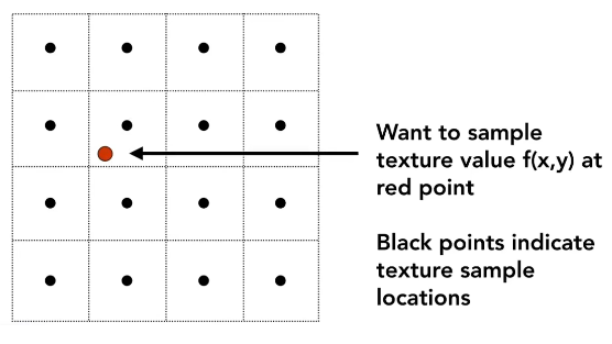 上文中提到一种最简单的做法就是取其最近的纹素,也就是其右上角的那个点作为纹理。但为了避免模糊的出现,我们可以使用另一种做法——双线性插值。