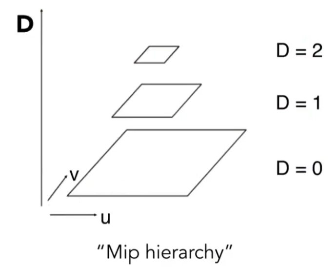 由于Level每高一级,纹理的边长都缩小1/2,所以该像素对应的层级$D$为: