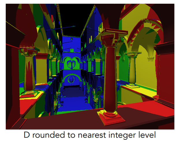 这里的$D$可能为非整数,我们取每个像素最靠近的Mipmap层级做一个可视化: