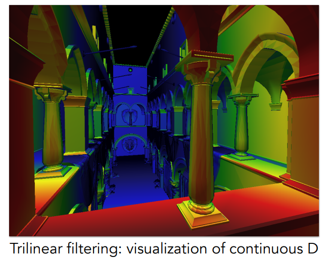 在使用了插值后,Mipmap的过渡就会变得更加平滑:
