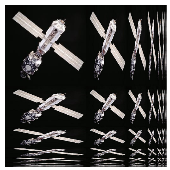 如果把各个Level的纹理叠加起来,就会像下图一样呈现出类似金字塔的形状: