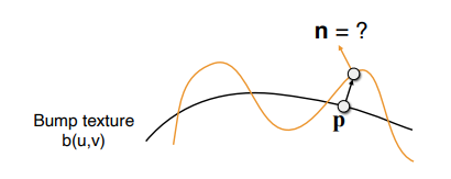 图中的黑线表示我们的实际表面(如前例中球体中的光滑表面),黄线表示我们想要模拟的表面,存储在凹凸贴图中。
