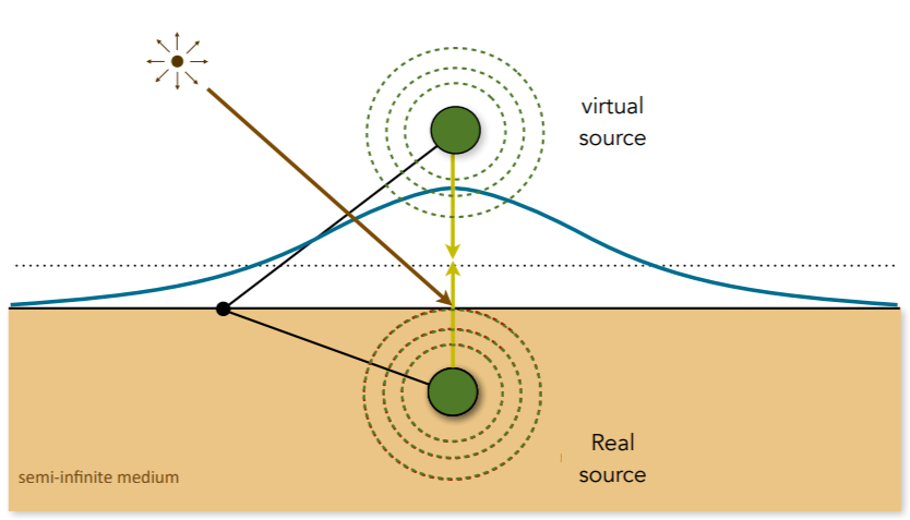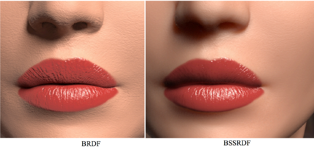 这里牵涉到的物理模型是次表面散射模型,描述的就是刚才我们提到的过程: