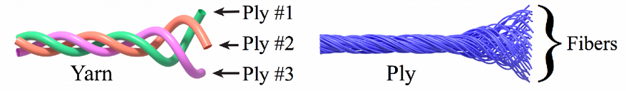 具体而言,就是Fiber(也就是最基础的纤维,例如羊毛)首先被缠绕成Ply(中文翻译应该是股?),然后Ply再被缠绕为Yarn,也就是一般我们所说的线。这些线经过编织,形成了我们看到的各色衣物: