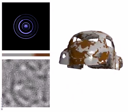这种方式可以很方便地用于简单细节材质的创建,例如车辆表面的锈迹: