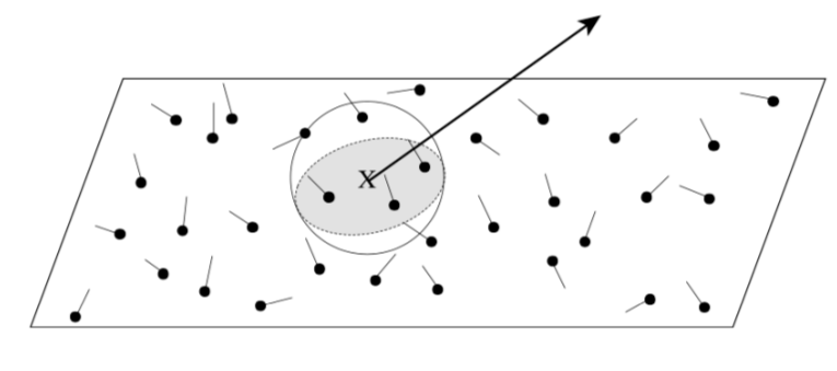下图是光子映射的最后一步——局部密度估计,这一步的主要思路是:带有越多光子的地方,应该会更亮。